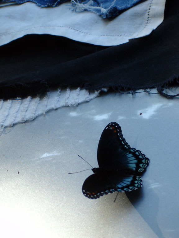 17. Thank you. simply thank you. A feast for my eyes. The fabric are all gorgeous. The butterfly - beyond beautiful. Your yard is like mine. I dye outside among the birds and bugs. It really renews the spirit. I just wish your butterfly would visit!